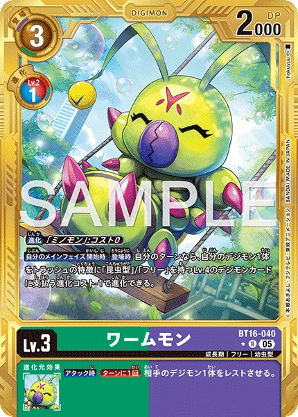 ワームモン【R★】《緑紫》 [パラレル版(AD1収録)BT16-040]